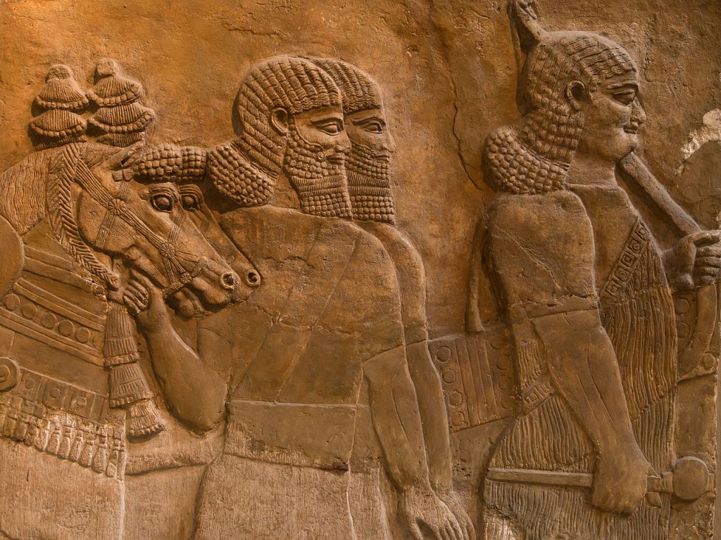A neo-Assyrian relief of Assyrians in a procession, Photo by Denis Bourez in the Brittish Museum, London. Shared under CC 2.0 https://en.wikipedia.org/wiki/Assyria#/media/File:Denis_Bourez_-_British_Museum,_London_(8748213226).jpg