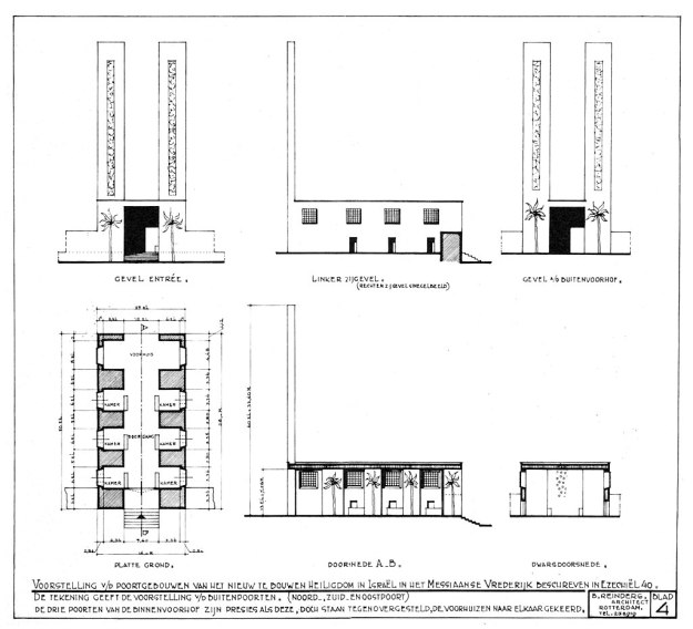 Gateways of Ezekiel’s Temple, as described in the Book of Ezekiel, drawn by the Dutch architect Bartelmeüs Reinders (1893–1979) released into public domain by artist.