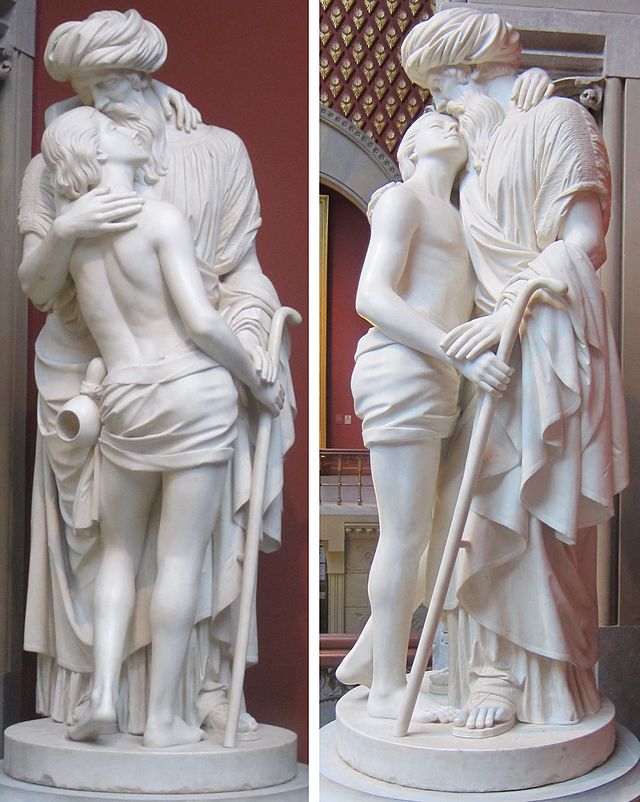 Now the joke is all about the ubiquity of the name Paco in Spain, but it also expresses a deep seeded truth that I think many of us can relate to about our desire for forgiveness to be received. For I think we all have those times where we wish we could change an action that hurt someone in the past, or to be able to take back the words that we said. We wish those words could be like the cartoon bubbles that we could pull back into our mouth to where they were never uttered in the first place. SFC Rubley who was my platoon sergeant while I was a platoon leader in the army used to talk about wanting to be able to lasso the words and say come back. But there is no bringing them back, there is no undoing the past, there is no way to go back and take back the words that were said or put in words that needed to be said. And the reality is that there is truly no future without forgiveness, there is no way forward without a new start. In fact, while forgiveness is one of the hardest things we are called upon as followers of Christ to do it is also at the very heart of our faith. It is right up there with loving the Lord your God with all your heart, mind, soul and strength and loving your neighbor as yourself, in fact it is necessary for both of these for there is no way to love one’s neighbor without forgiveness. We might think that the world of the bible it might be easier to live into forgiveness, but that would be mistaken for you see the bible is written in the same world that we live in. The Old and New Testaments are full of stories of brokenness, unreconciled differences, and woundedness. Even very early in Genesis (Genesis 4) we encounter the story of Lamech which is the opposite of forgiveness, “I have killed a man who attacked me, a young man who wounded me. If someone who kills Cain is punished seven times, then the one who kills me will be punished seventy-seven times!” Or the very first family we follow for a long journey in Genesis, Abraham and Sarah or Abram and Sarai as they start out, is a story of brokenness-yet we don’t often think of it that way. God’s promised child had been a long time in coming and Sarai says to Abram ‘we’re not getting any younger, why don’t you sleep with my servant Hagar and have a child through her and that can be the child we have been waiting for.’ And so Abram does and Ishmael is born, and yet later-after God has changed their names to Abraham and Sarah and the promised child Isaac is born there is no longer, at least in Sarah’s view, anyplace in the household for Ishmael and Hagar and the image is from a sculpture of Abraham saying goodbye to Ishmael, Hagar is facing away and Sarah is watching from behind the rock to ensure this son of Abraham from Hagar will be sent away. Ishmael will never return until both Sarah and Abraham are dead and only then will Isaac and Ishmael be reunited to mourn the death of their common father. But just because the people that God works through in the bible don’t live out God’s vision of forgiveness-that doesn’t mean that is who God is.